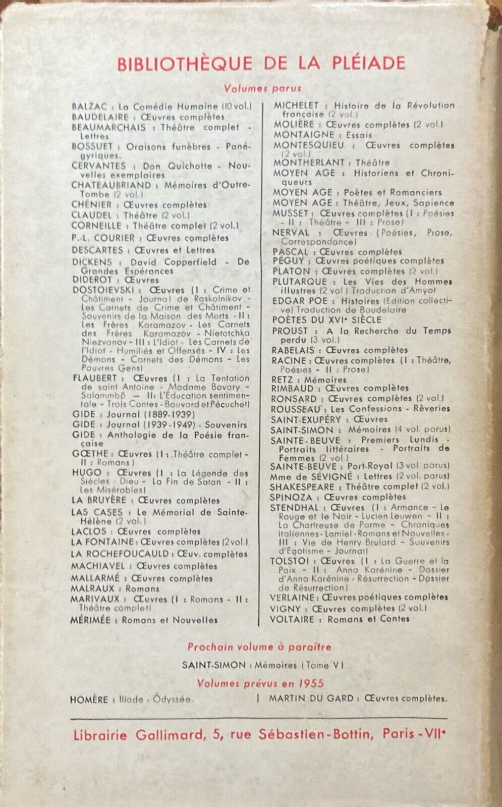 Antoine de Saint-Exupery Oeuvres 1953 Bibliotheque de la Pleiade hardcover in very good condition. To expand, good condition dust jacket with a like new condition book.