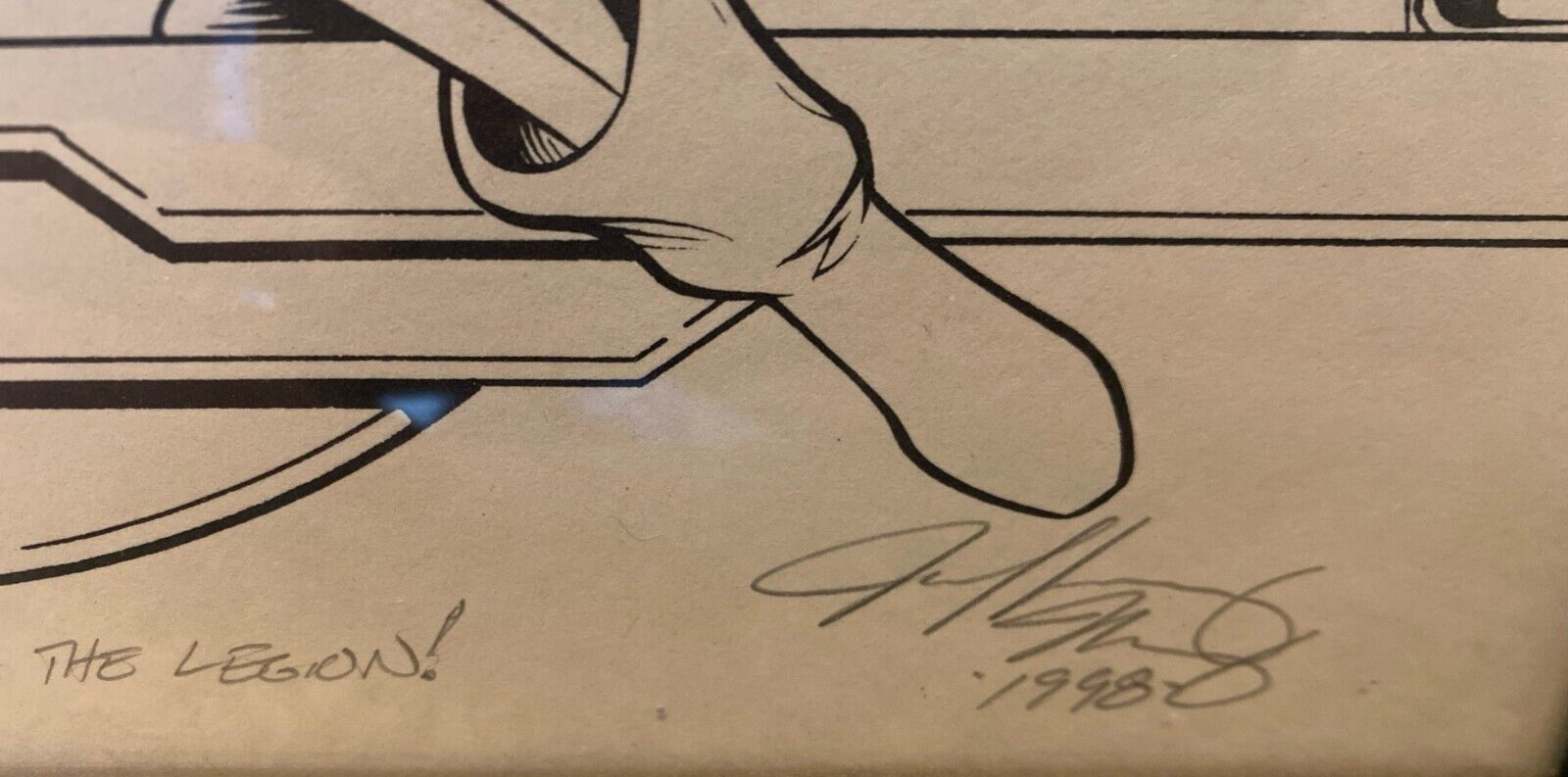 Legion of Superheroes print measuring 11"x17" that is double signed by both Carani and Moy. This particular print bears the inscription, "To Chris! Long live the Legion!" Custom framed with black aluminum. COA did not come with this item.