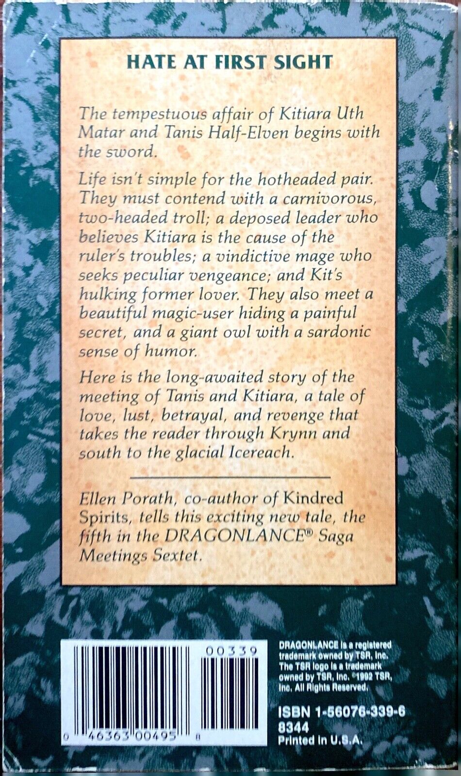 Steel and Stone by Ellen Porath, a Dragonlance novel, 1992 TSR paperback. Volume 5 of The Meetings Sextet. First edition, first printing, as stated.