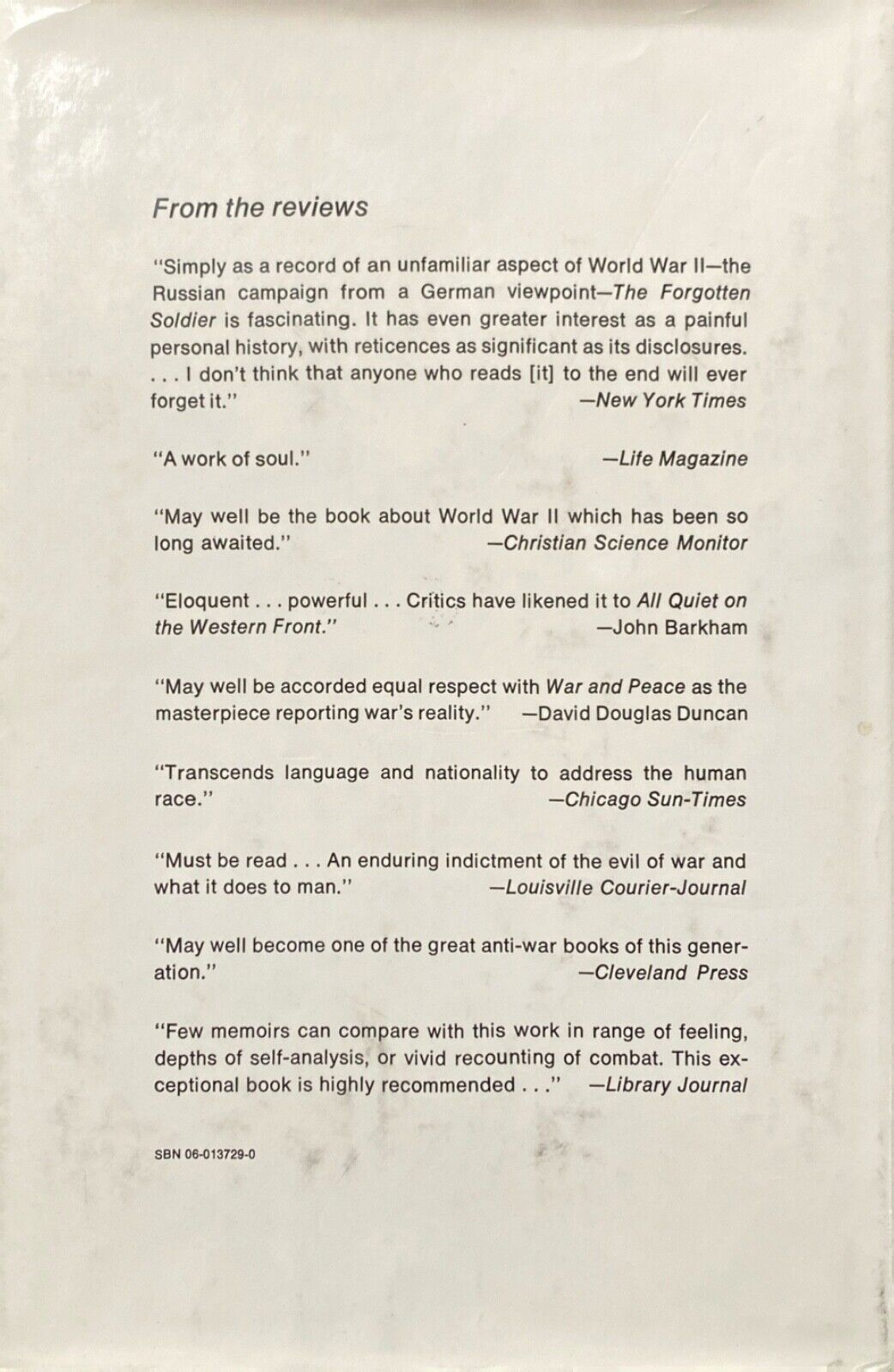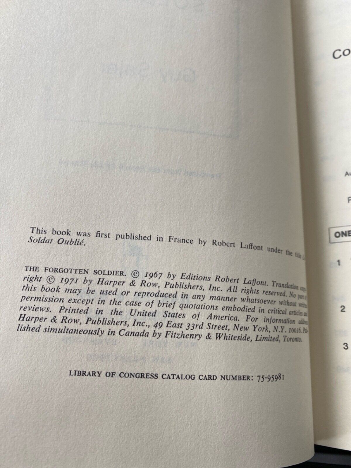 The Forgotten Soldier by Guy Sajer 1971 Harper & Row hardcover. Translated from the French, first American edition.