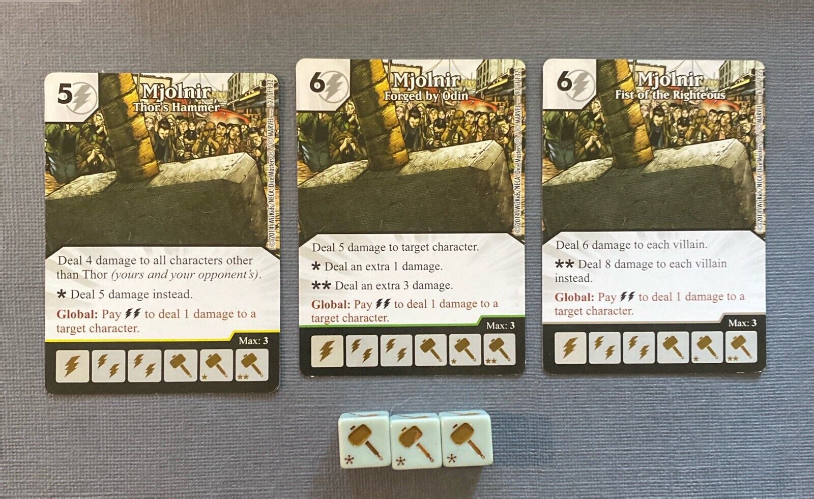 Complete set of 3 Mjolnir cards from WizKids Marvel Avengers vs. X-Men
